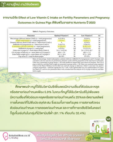 จากการที่ครูก้อยศึกษางานวิจัยในหลาย ๆ ฉบับ ในเรื่องของวิตามินและแร่ธาตุต่าง ๆ ที่เกี่ยวข้องกับภาวะเจริญพันธุ์ และหนึ่งในนั้นคือวิตามินซี ครูก้อยพบว่าการทานวิตามินซีนั้นส่งผลต่อภาวะเจริญพันธุ์ในหลาย ๆ ด้าน อาทิ