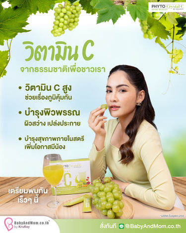 ครูก้อยจึงตั้งใจออกแบบวิตามินซีรูปแบบชงดื่มอย่าง “Phyto Crystal C By KruKoy วิตามินซีธรรมชาติเพื่อชาวเรา” ที่มีสารสกัดจากพืช ผัก และผลไม้ที่มีวิตามินซีสูง มีความปลอดภัย มาให้ผู้หญิงที่กำลังเตรียมตัวตั้งครรภ์และผู้หญิงที่กำลังตั้งครรภ์โดยเฉพาะ เพื่อเสริมวิตามินซีให้เพียงพอต่อความต้องการ เพราะวิตามินซีนอกจากอาจมีส่วนช่วยเพิ่มโอกาสสำเร็จในการตั้งครรภ์แล้ว ยังอาจมีส่วนช่วยส่งเสริมฮอร์โมนโปรเจสเตอโรน ซึ่งเป็นฮอร์โมนแห่งการตั้งครรภ์ อาจมีส่วนช่วยส่งเสริมการเจริญเติบโตของทารกในครรภ์ ช่วยเสริมสร้างภูมิคุ้มกันให้ทารกในครรภ์ ลดปัญหาเลือดออกตามไรฟันในคุณแม่ที่กำลังตั้งครรภ์ และยังอาจมีส่วนช่วยให้ผิวพรรณของแม่ ๆ ดูสุขภาพดี เปล่งปลั่ง ลดฝ้า กระ จุดด่างดำในขณะตั้งครรภ์ และป้องกันผิวจากแสงแดดได้อีกด้วยค่ะ