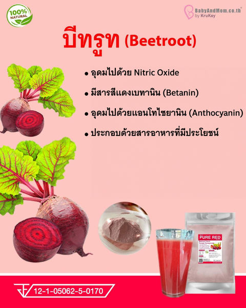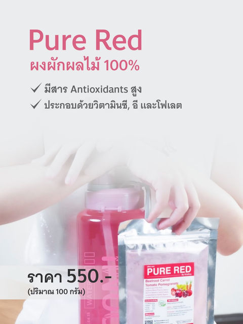 Pure Red ผงผักสีแดงจากผักผลไม้สด ประกอบด้วย แครอท มะเขือเทศ ทับทิม บีทรูท