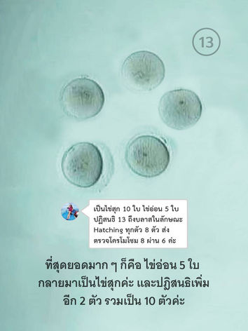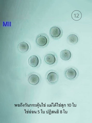 👉เก็บไข่ได้ 15 ใบ ปฏิสนธิ 13 ตัว (เกิน 75%)
