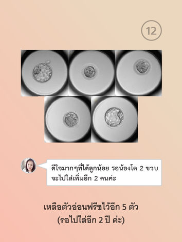 • เหลือตัวอ่อนฟรีซอีก 5 ตัว (รอไปใส่อีก 2 ปี)