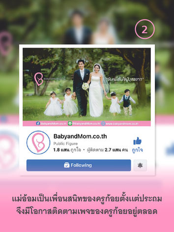 สวัสดีค่ะ ครูก้อยเป็นผู้ก่อตั้ง บริษัท เบบี้แอนด์มัม (ประเทศไทย) จำกัด และเป็นเจ้าของเพจ BabyAndMom.co.th (เพจให้ความรู้สำหรับผู้มีบุตรยาก) ครูก้อยยินดีอย่างยิ่งที่จะแบ่งปันความรู้และประสบการณ์ตรงตลอดระยะเวลาหลายปีที่ผ่านมา ท่านใดที่ต้องการคุยกัน สามารถทัก LINE@ เข้ามาได้เลยนะคะ โดยจะมีครูก้อยและทีมงานคอยให้การต้อนรับค่ะ