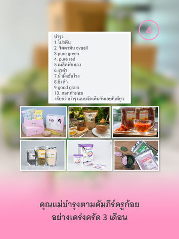 " รอบนี้แม่เลยซื้อของบำรุงตามคัมภีร์ครูก้อยแบบจัดเต็มเลยค่ะ โปรตีน Ferty , วิตามินบำรุงไข่ OvaAll , ผงผัก Pure red , ผงผัก Pure green , เมล็ดฟักทอง , งาดำ , น้ำผึ้งชันโรง , ขิงดำ , Good Grain , ดอกคำฝอย และแม่ใช้ ยาสระผม ครีมนวดมะกรูดด้วยค่ะ ตอนท้องผมไม่ร่วงเลยค่ะ "