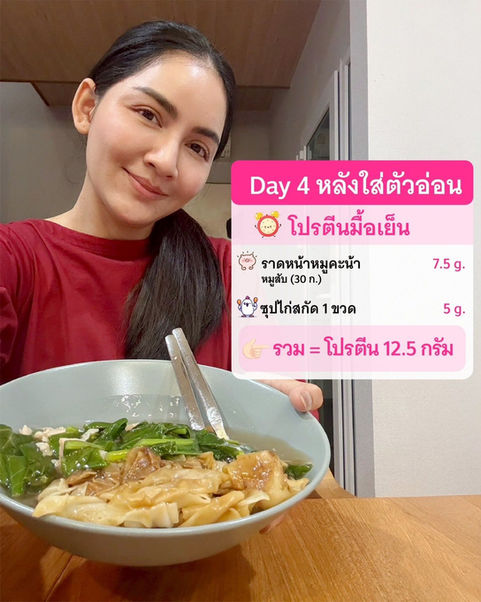 เจอกันมื้อเย็นค่ะแม่ๆ ครูก้อยจะต้องเก็บโปรตีนให้ครบวันละ 80-100 กรัมค่ะ เพื่อการพัฒนาและการเจริญเติบโตที่สมบูรณ์แข็งแรงของเบบี๋ค่ะ